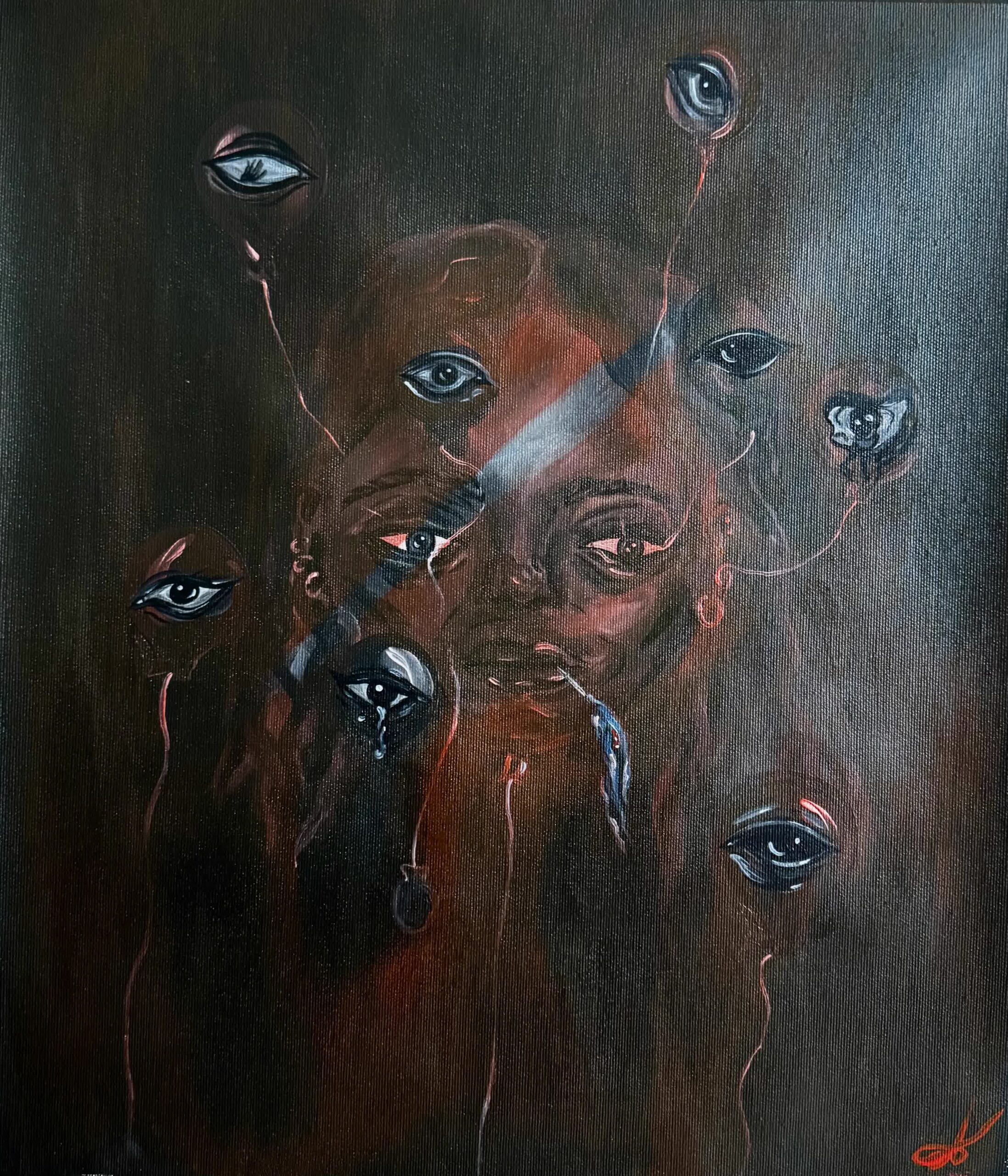 While struggling with depression, I learned that the most important thing is to protect your light —this light in your eyes, your smile, the warmth inside your body. No matter what’s happening around you, or what you’re going through, you need to save at least a tiny sparkle inside yourself. If you lose it completely, there may be no way out. Medium: Acrylic on canvas Dimensions: 45×35 cm Year: 2025